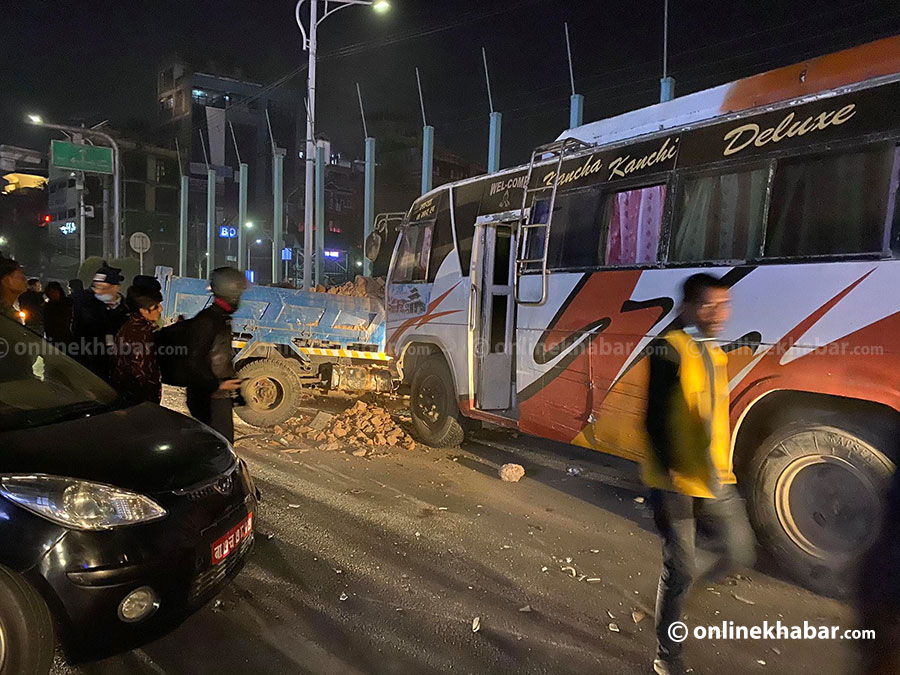 बानेश्वर–शान्तिनगर खण्डमा बस, टिपर र कार ठोक्किए